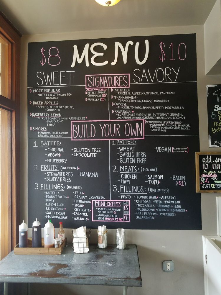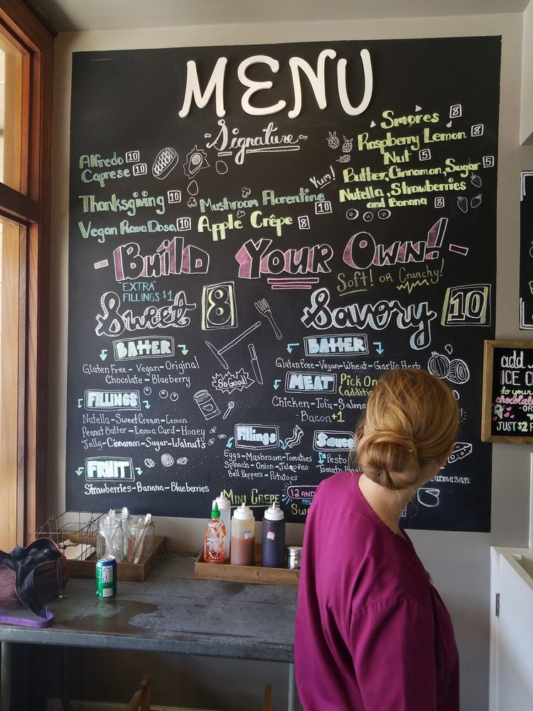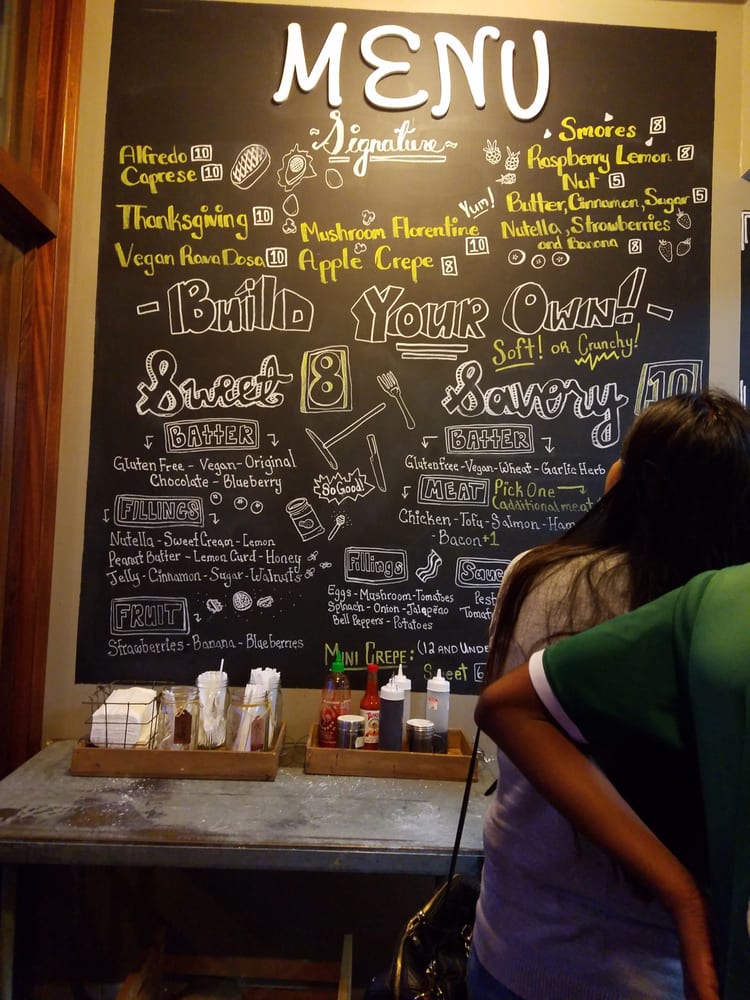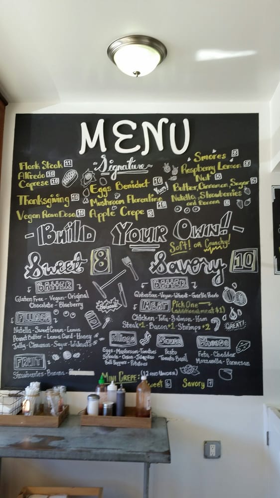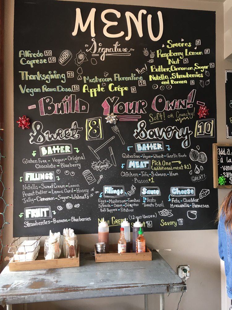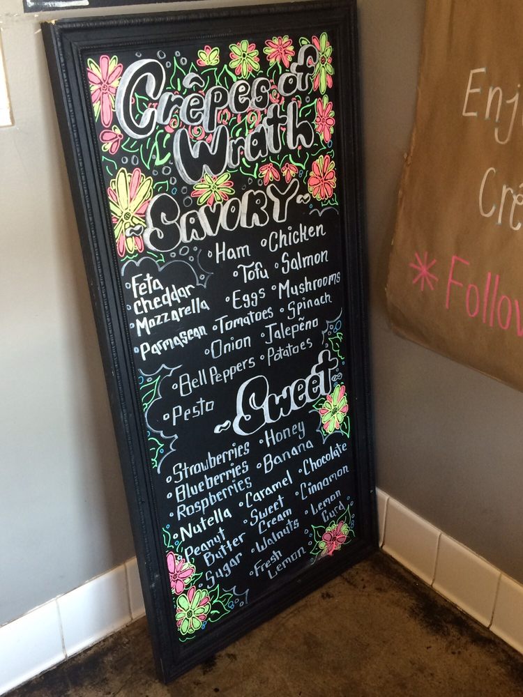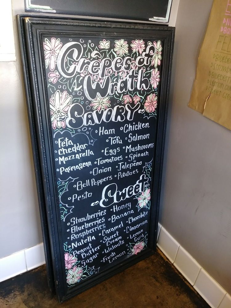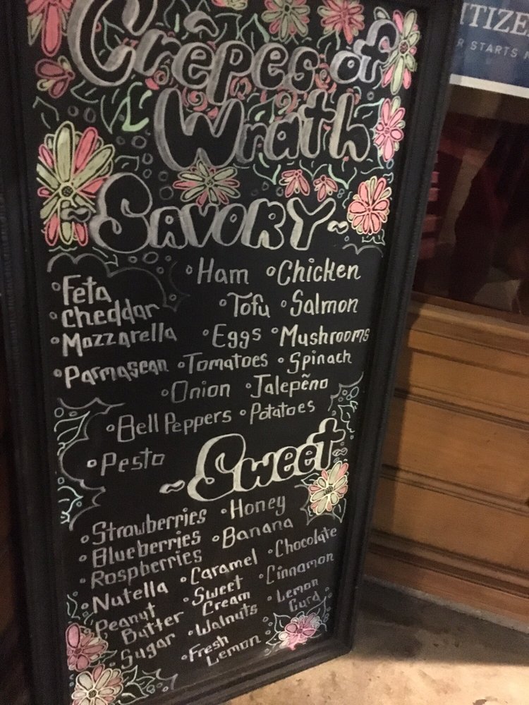 Introducing the menu at Crepes of Wrath, a popular creperie in Redlands, CA. This hipster, casual spot offers a variety of options including vegan and vegetarian choices. They accept a range of payment options and offer outdoor seating, making it a great choice for groups, kids, and even dogs. The menu features a unique blueberry batter that has customers coming back for more. Reviews praise the delicious crepes, especially the ones with Nutella, bananas, and strawberries. The savory crepes are also a hit, with quick service and a cozy atmosphere. Despite the small shop getting crowded, customers recommend adding sauces and sprinklings from the table. Overall, Crepes of Wrath is a must-visit for those looking for a tasty and unique crepe experience.